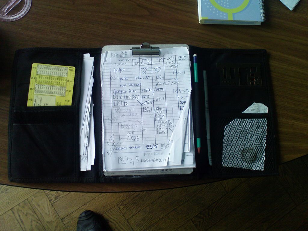 Далее второй которым я пользуюсь при дальных полётов из за его вместимости на разные "бумажки". Есть место и для навигационных линеек , для страниц из АИП , и для свёрнутой карты.