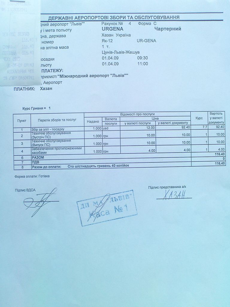 Для Вас , Вашего приятеля и ДЛЯ всех наших пилотов. Вот я выложил фото , фактуры оплаты за посадку в аэропорту Львов при выполнении МЕЖДУНАРОДНОГО полёта!