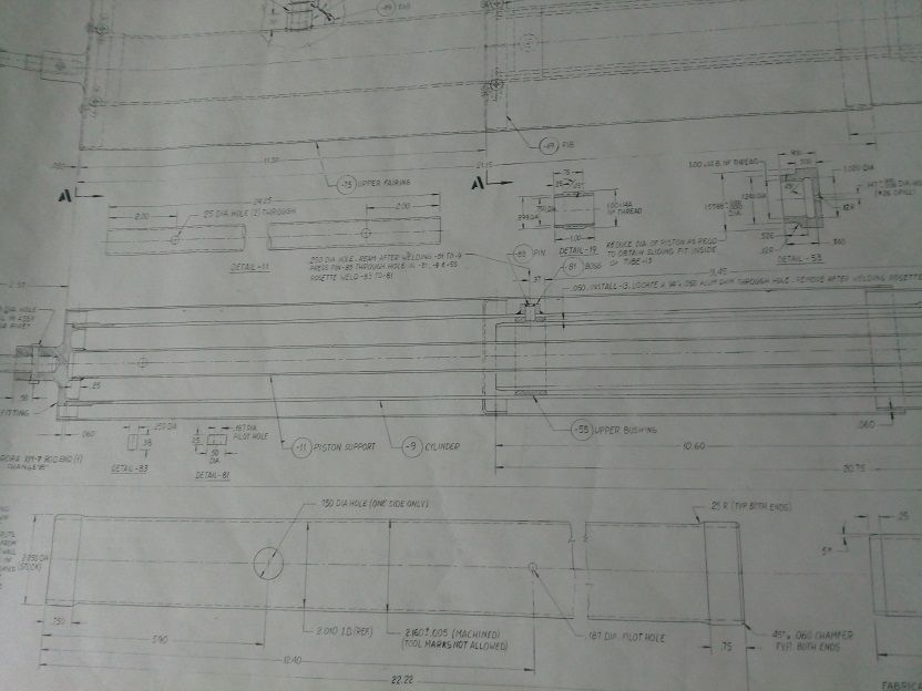 Стойка амортизатора. Если честно, я с такой конструкцией не встречался. И с трудом представляю, как это работает. Ну понятно, воздух это пружина. Там три трубы , одна в другой,к средней снизу крепится ось колеса. Вверху, фитинг для подкачки. Чисто технически, не то что бы сложно, просто много токарной работы. А вот средняя труба, внутри должна быть от хонингована, а сверху отполирована. Иначе смысла в манжетах нету. Как от хонинговать трубу длинной 650мм.