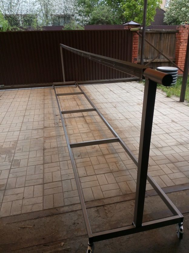Дык я ж о шампуре. Геометрия блин👆 труба прогибается и тянет за собой вертикальные стойки, если бы вы их положение зафиксировали укосинами, то труба бы не прогибалась так.Да у меня к стойкам и раме претензий нет. Я имел ввиду, сам шампур, на котором ферма будет собираться. При длине 6 метров он под собственным весом прогибается на сантиметр. Геометрия блин. А стойку в центре постоянно ставить и снимать тоже не айс. 🙂