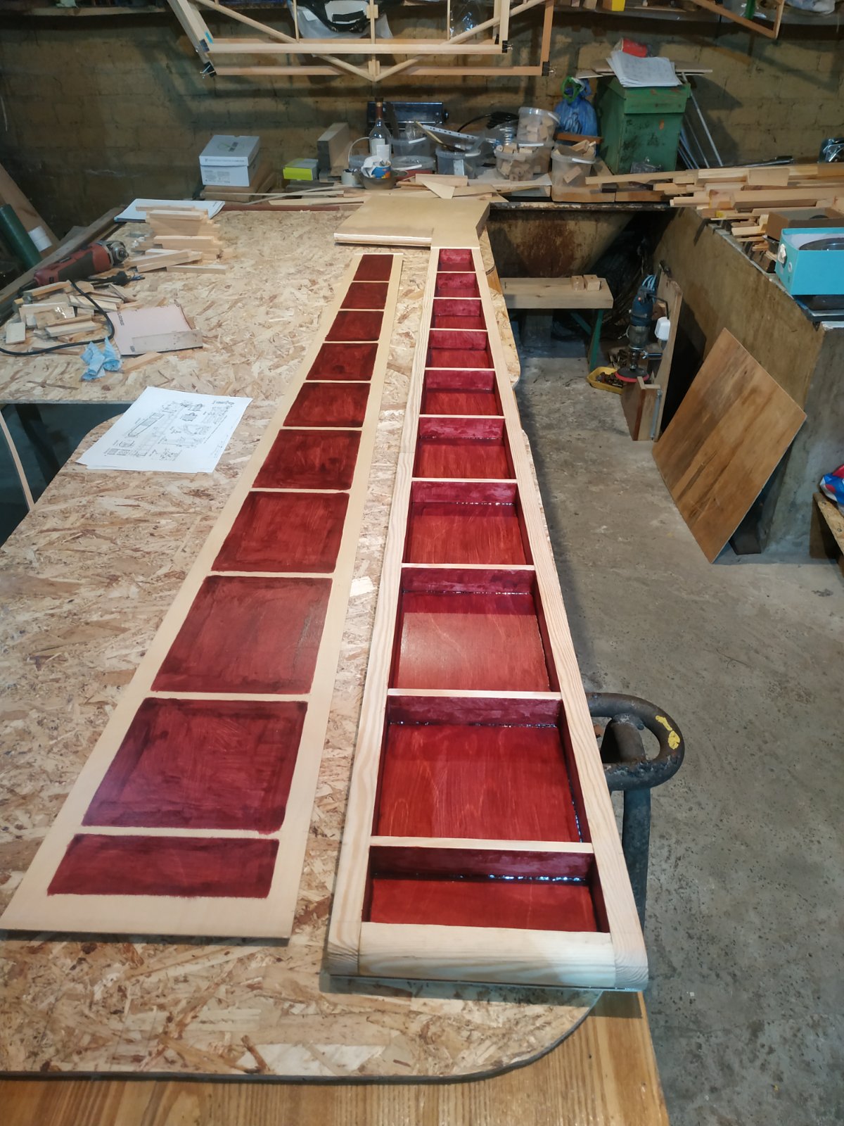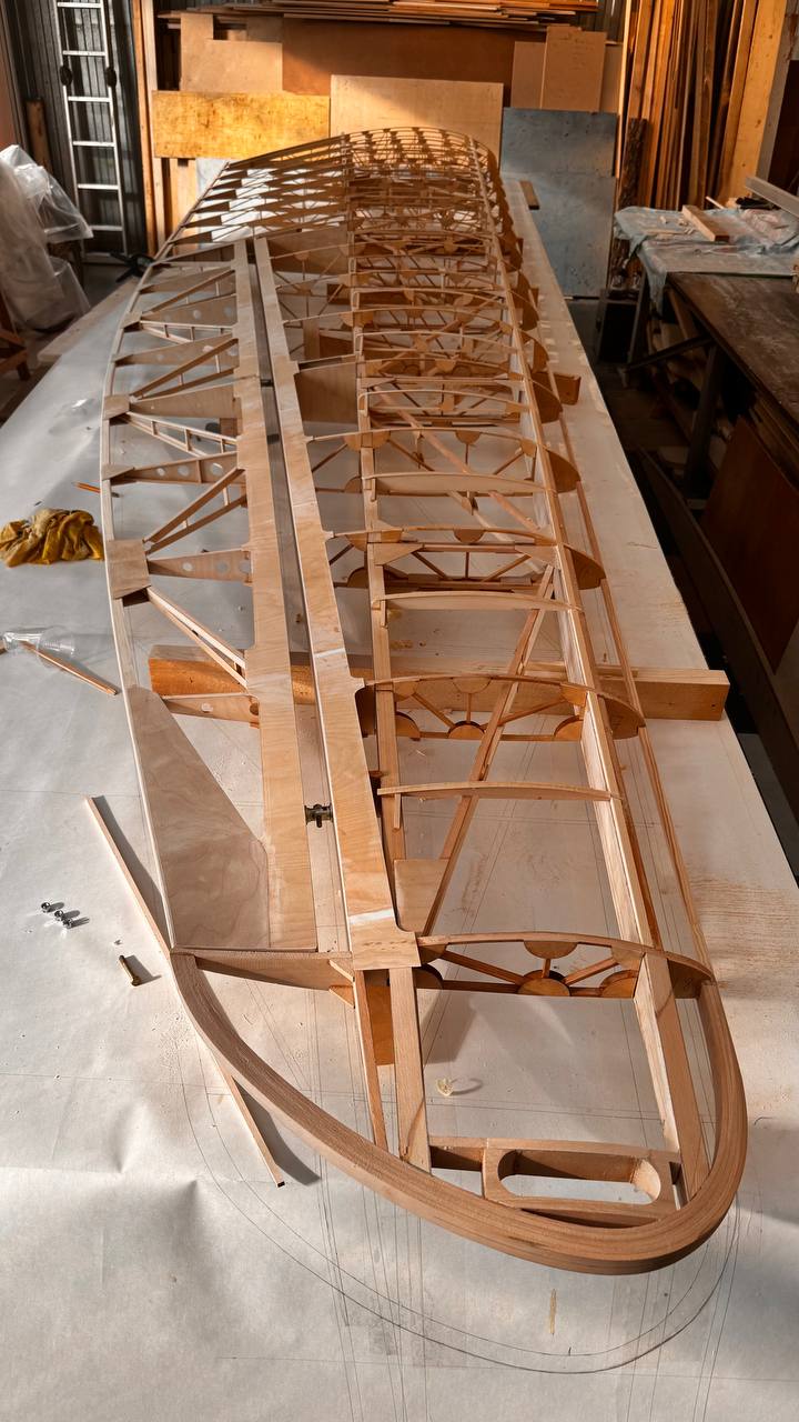 Ленты из фанеры , которые в крыле соединяют лонжероны- убраны. Вместо них распорные рейки как на немцах. Нервюры выполнены по классике, а не как описаны в книге!