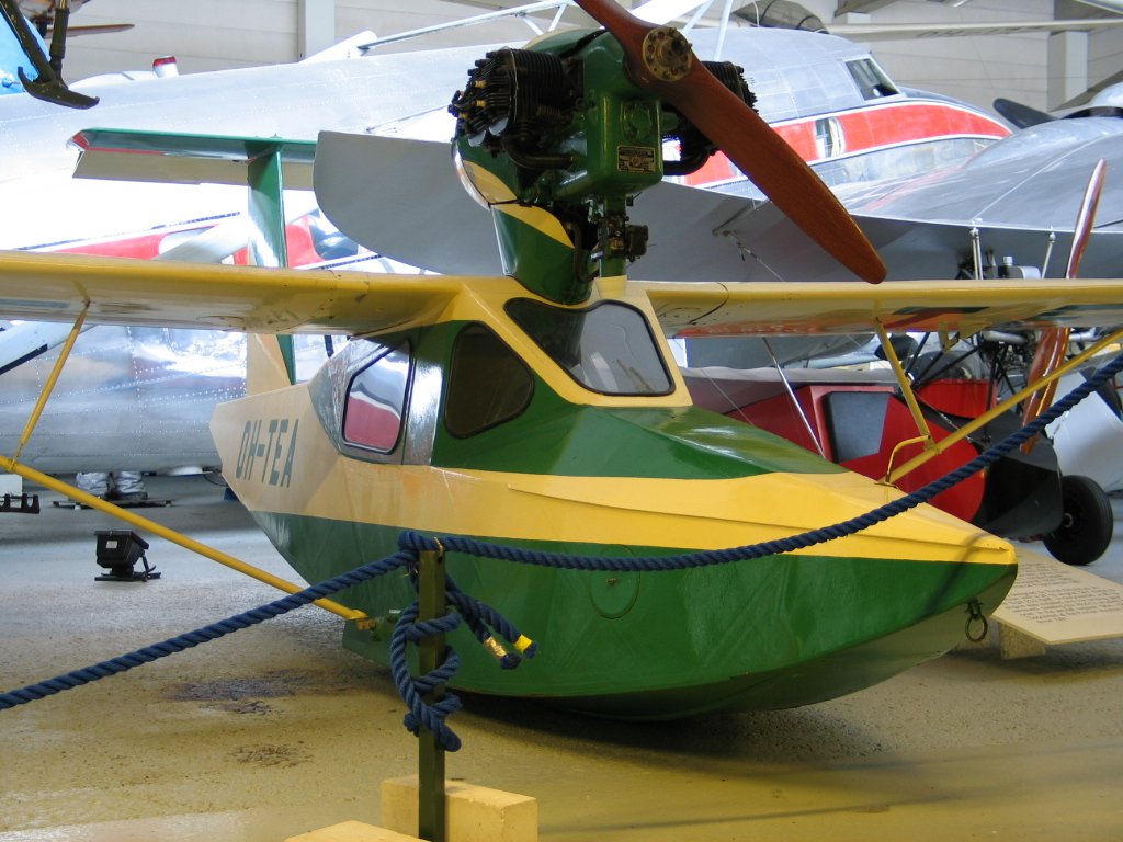 Ооо... Это же широко известная в узких кругах "Eklund TE-1", созданная товарищем Харальдом Эклундом в единственном экземпляте и без происшествий отлетавшая 20 лет. Сейчас находящаяся в музее. Хотя в гидросамолётной теме диванные экспэрды, ткнув пальцем в небо, насочиняли всякого бреда по поводу убогости и опасности конструкции.