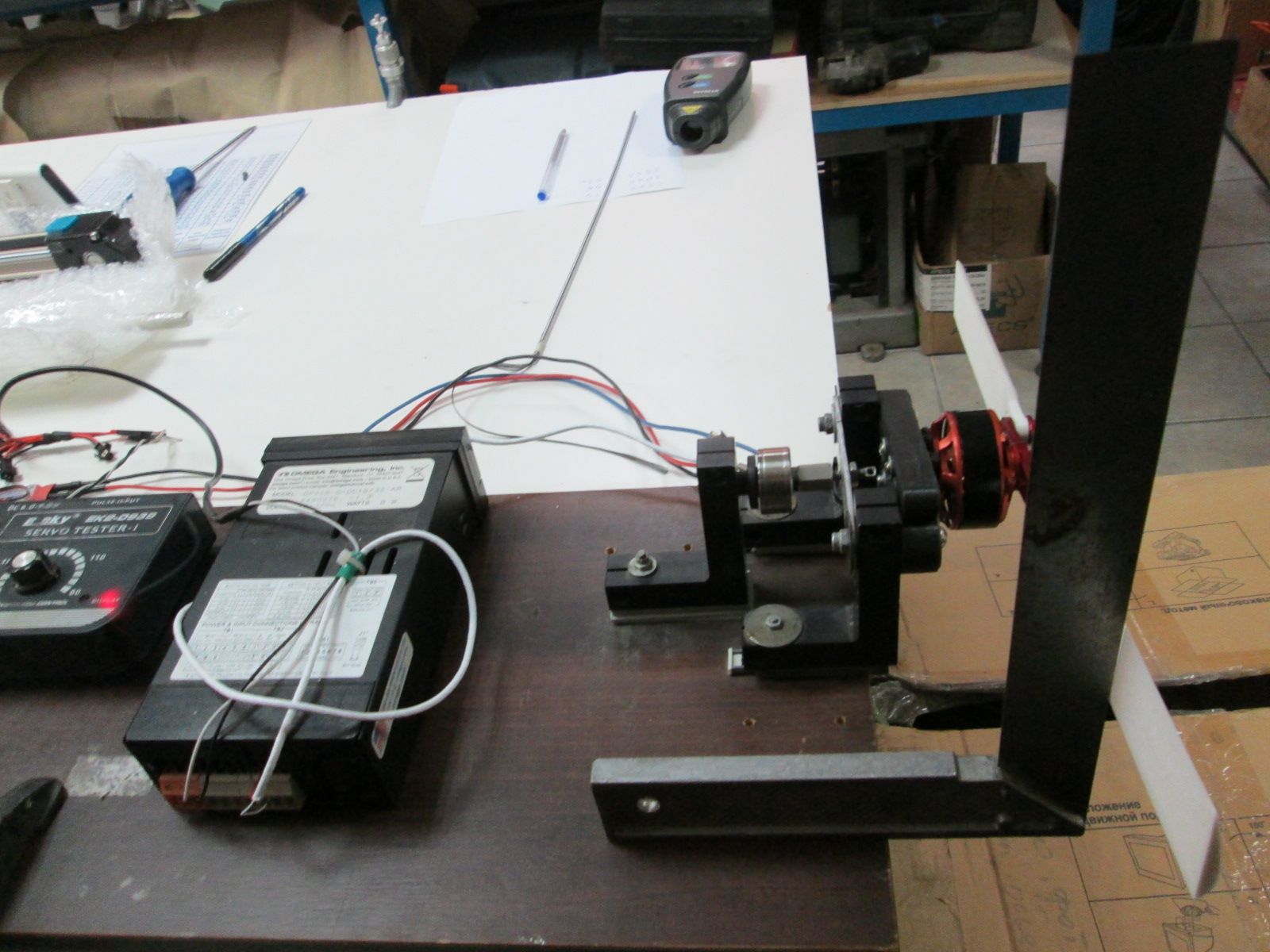 На стенде с плосковыпуклого профиля была получена тяга, и соответственно отбрасывался поток за винтом. Тяга изменялась примерно в квадратичной зависимости от изменения оборотов, как и положено.