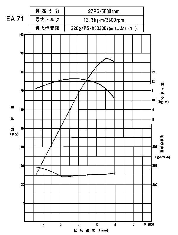 Например, двигатель Субару ЕА-71. Имеем 85 л/с при оборотах 5600 по графику дроссельной характеристики. Потери мощности в редукторе-10%. Тогда 85-10%=76,5 л. с.