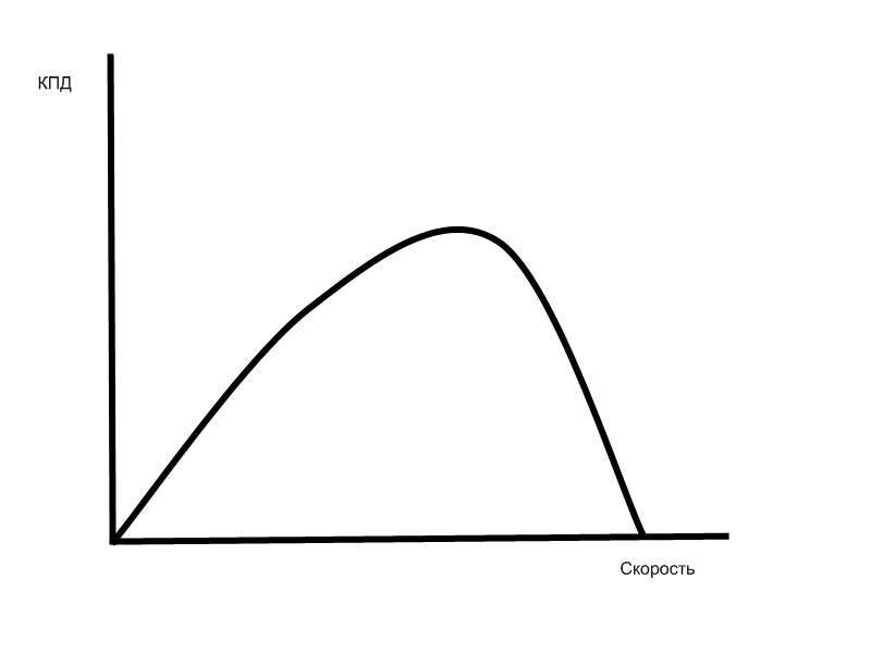 График КПД от скорости всегда будет выглядеть примерно так. После расчётной точки всегде резкое вырождение винта.