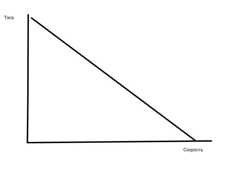 График зависимости тяги от скорости будет всегда выглядеть примерно так. При нулевой скорости расчёт ведётся либо по другой методике, либо эмперически.