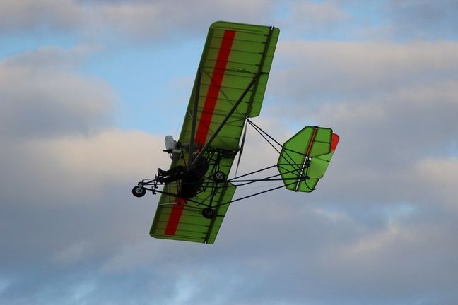 Самолет все таки не такой уж скоростной. В одиночку максимальная - 85, сваливания 40. Вдвоем доводил до 48, дальше не решился. Управляется очень необычно: небольшое отклонение педалей приводит к значительноу крену, одной ручкой его особо не развернеш. Если в глубоком вираже держать педали слегка в сторону крена, то одной ручкой из виража его не вывести. Тут паниковать не следует! Зато на оттриммированом самолете можно вообще бросить ручку, взять в руки кинокамеру и управлять педалями. Можно его даже посадить с полностью заклинеными элеронами.