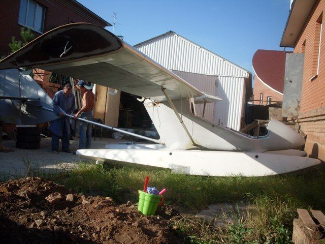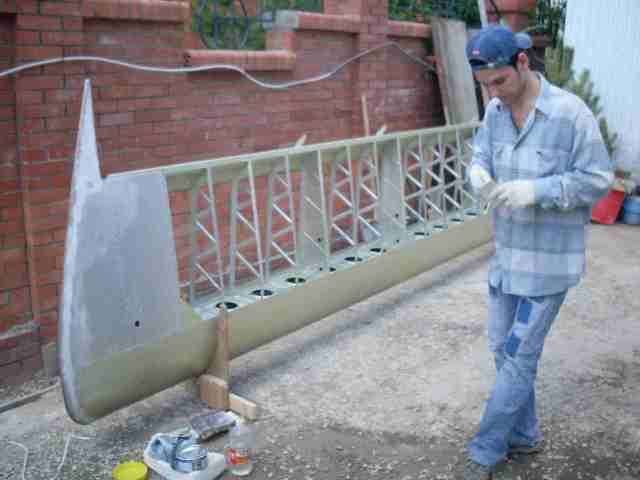 Андрей не только строит прекрасный планер из реечек, но и обтягивает все поверхности тиком.