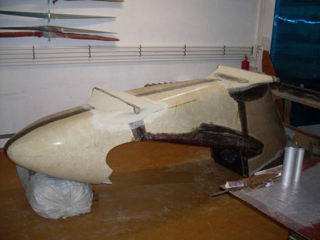 На самом деле от дельталета осталась только форма носа. Фюзеляж трехслойный, с 3-мя миловыми шпангоутами и еще бимсы пришлось приклеить, потому что форма была изначально с большим кривым вырезом. По хорошему надо делать форму как на а-20 тогда и фонарь встанет