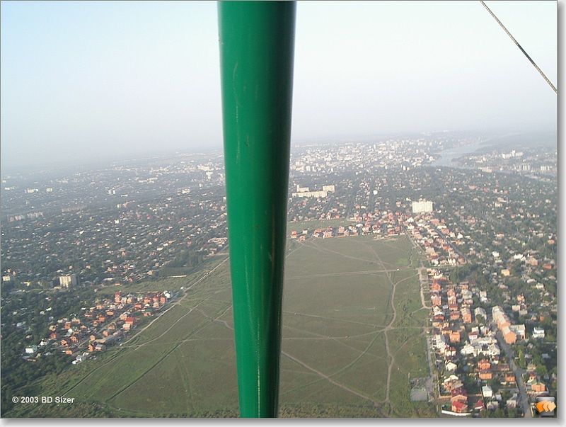 Нет, такого нахальства я не ожидал. Летать над Западным в районе Вертолетного поля и над постом ГИБДД, т. е. над мостом - это надо уметь. Тем более, что это действительно район глиссады ГА. К собору поближе желания не было? А что за микрорайон с озером? Сверху не узнал.