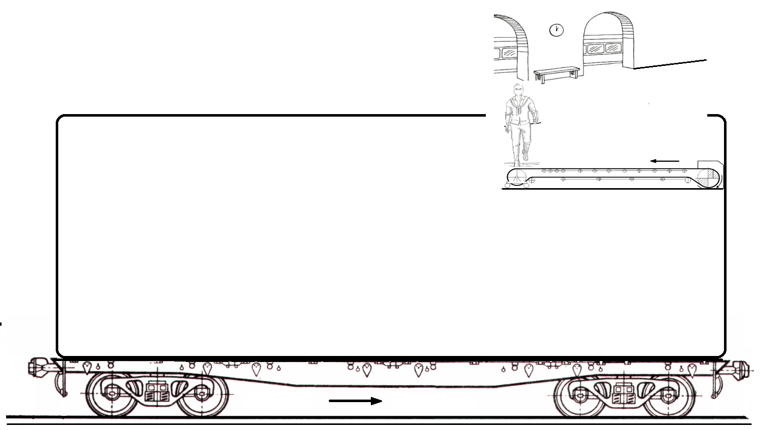 Конечно вы не тупите. Именно это и происходит в реальной действительности. Именно об этом я и писал в посте #1/004 на стр.51. Взгляните на нижний рисунок, здесь тоже, только вместо человека планер, а вместо транспортера сила резинового каната. И самое основное, в чем вы действительно правы, так это то, что именно платформа, со всем ее объемом воздуха, надвигается на планер, создавая при этом воздушный поток подобный ветру в аэродинамической трубе, а планеру нет никакой необходимости тратить свою энергию на увеличение своей инерции, поскольку у него нет реального передвижения относительно Земли.