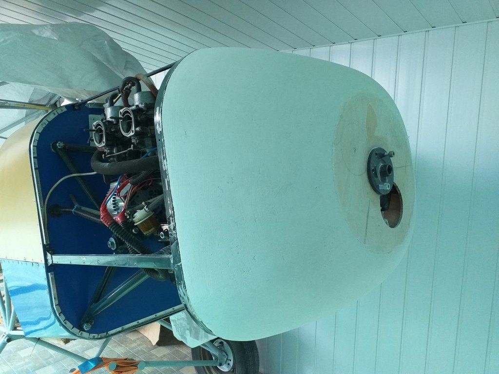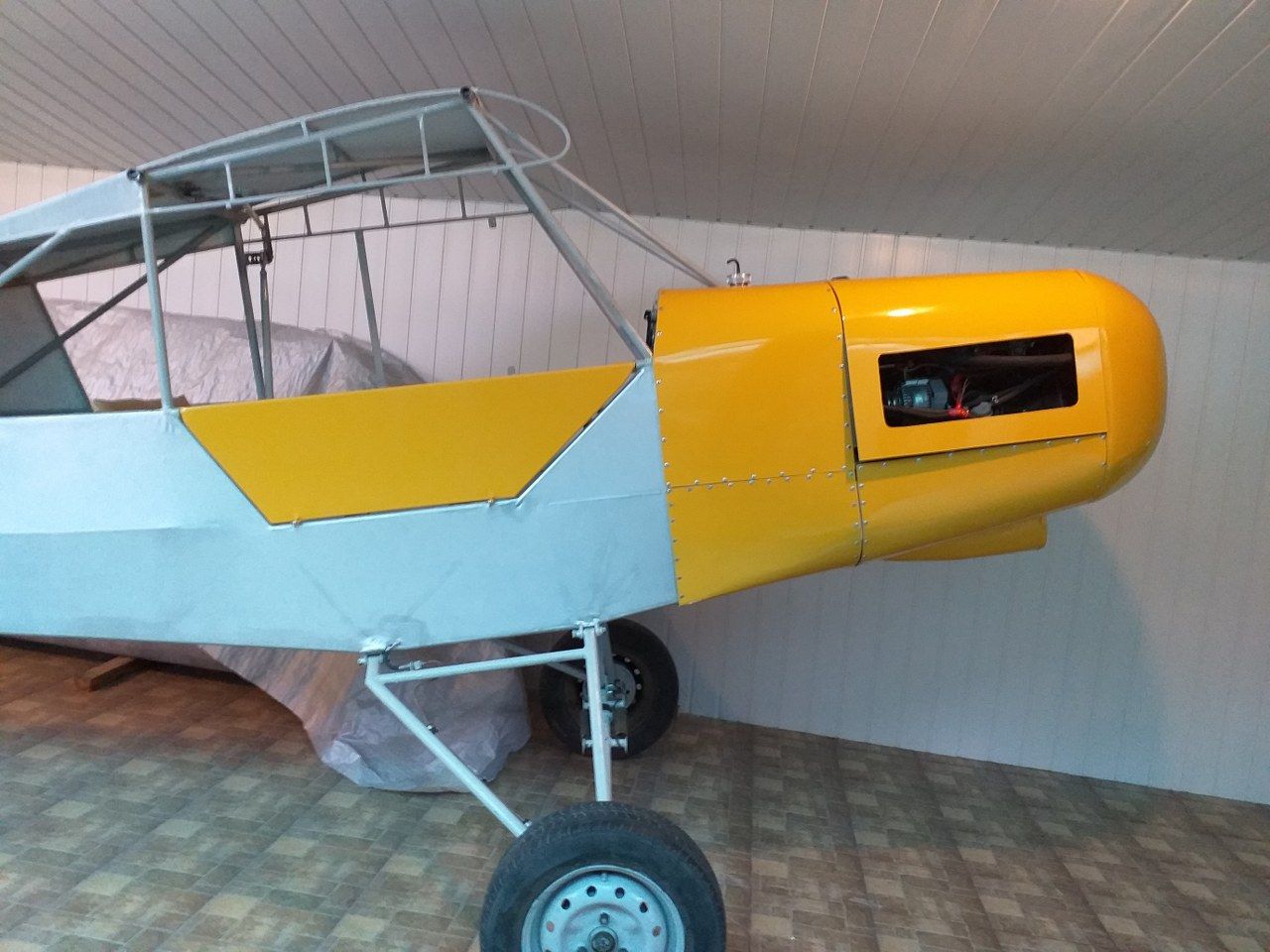 Нарисовался носик самолёта ,получился несколько длинноватым ,но с этим мотором ,короче не выходит .С Субару конечно было бы красивее. Капотпока закрутил на саморезы ,боюсь что опять нужно будет снимать ,потом уже заклепаю.