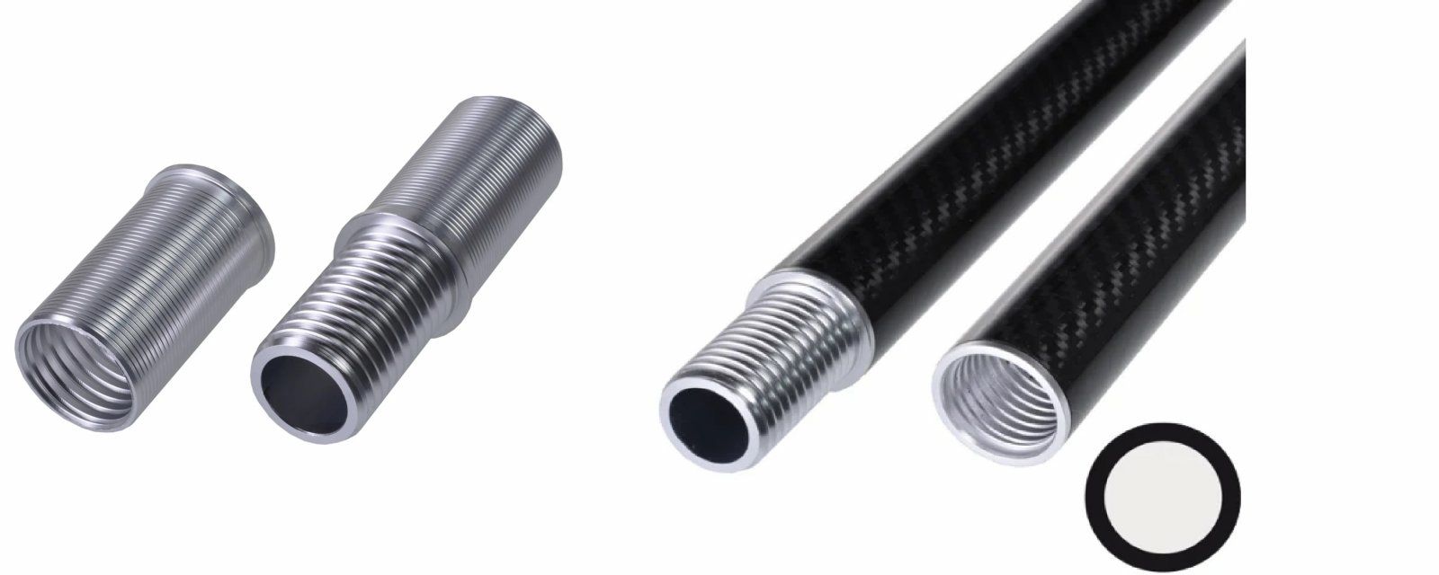 Игорь Негода в ютубе делал всякие трубки с наконечники. Главное что он сделал, это волнистость на алюминиевой вулке, а ля соединитель шлангов, ну поверх карбоновый нитью в эпоксидке все соединение перематывал.. Посмотрите его видео он там много экспериментов, снагружением до разрушения делал.