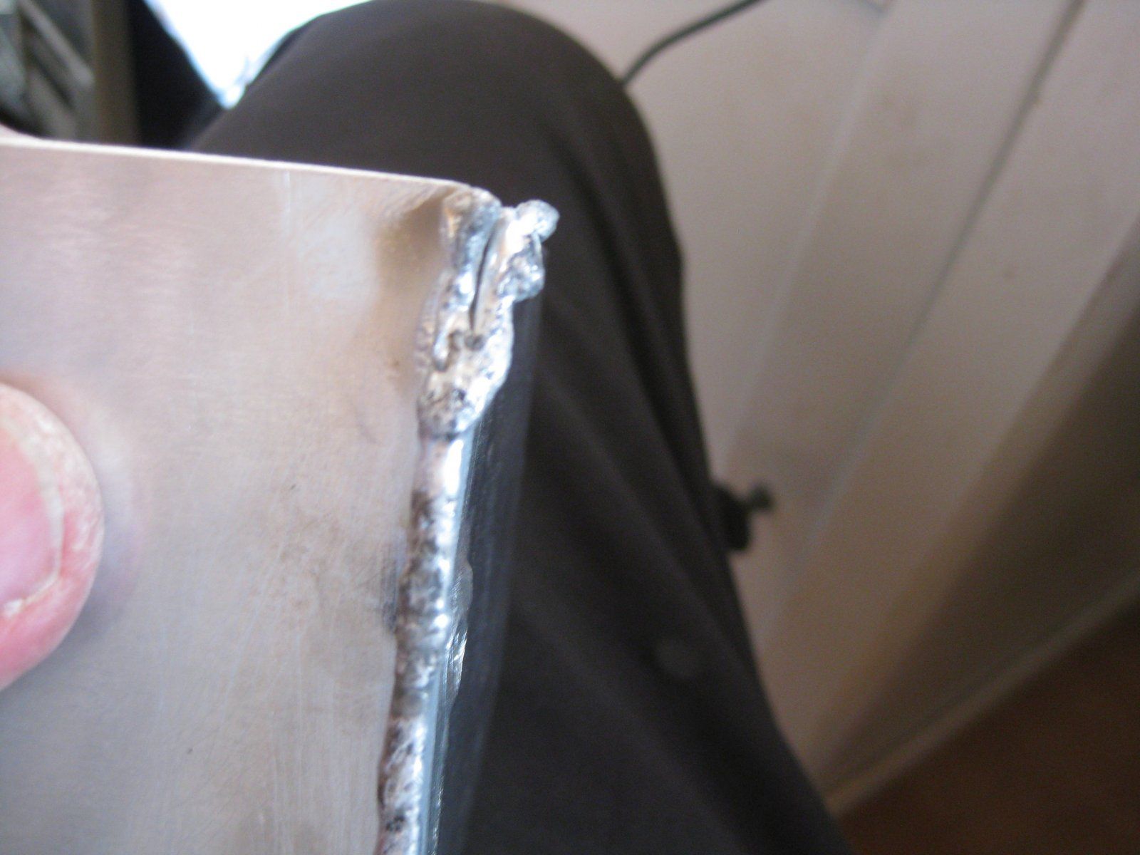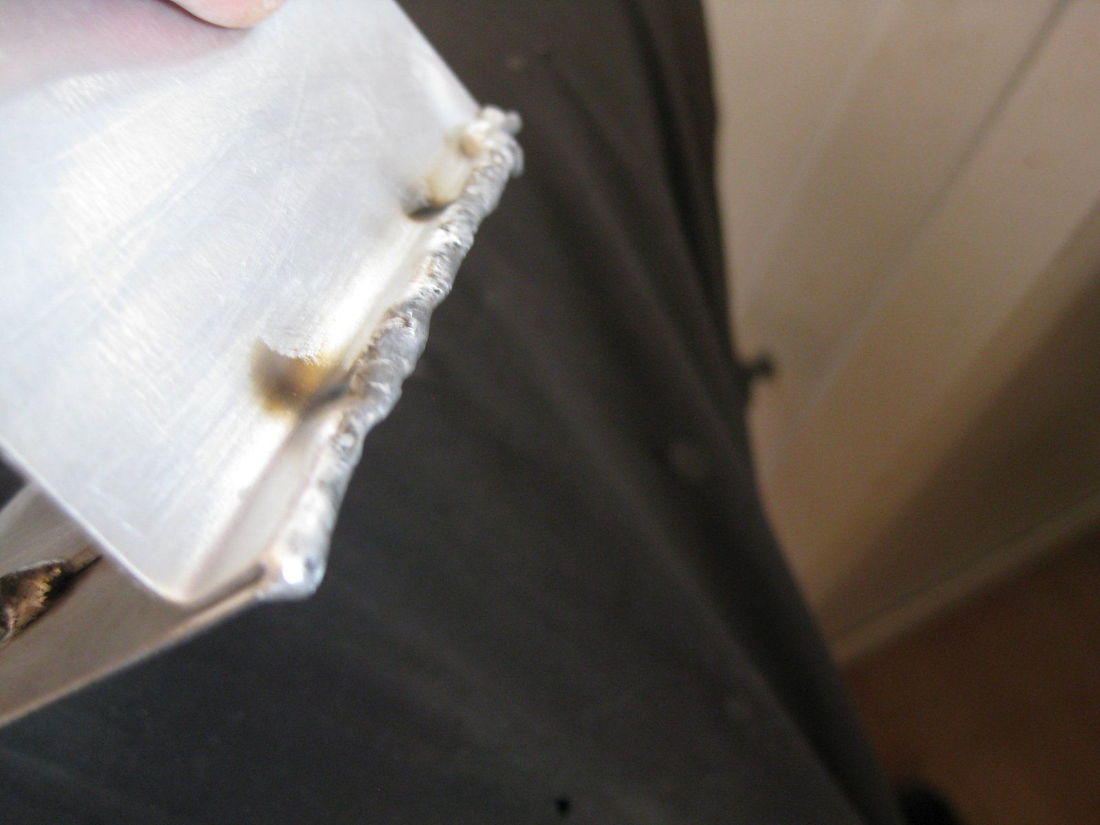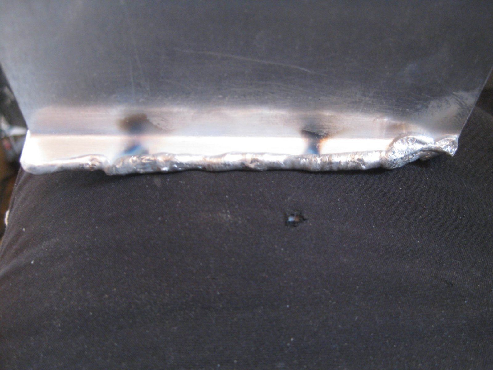 Самое важное, когда греешь место - как только алюминий расплавился, очистился и растёкся, залил дырки и место выглядит более-менее нормально - сразу сдвигать горелку или выключать ток, иначе всё расплавится, провалится и будет плохо. Счёт идёт на десятые доли секунды.