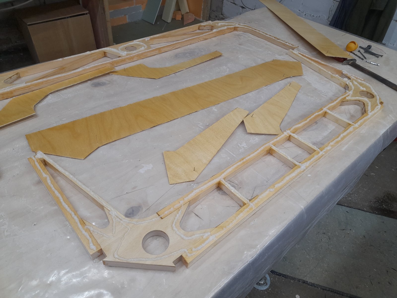 В данный момент клею шпангоут гаргрота с1-с6 они как раз силовые выполняют роль дуги безопасности. рядовые вырезаются просто из фанеры а эти клеятся из тонких ламелей, прочности должно быть достаточно.
