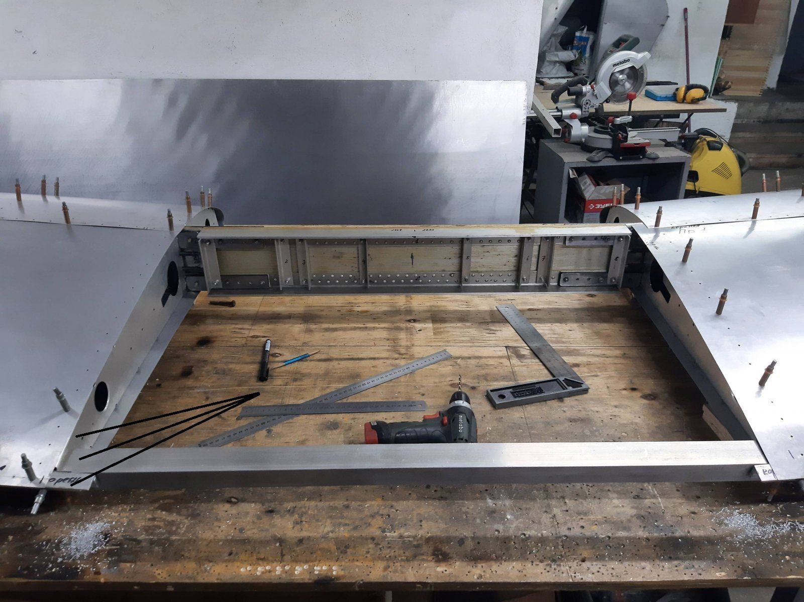 Не рано? При окончательной сборке не измениться положение отверстий? Или отверстия меньшего диаметра (предварительные)?Выставил передний лонжерон центроплана и проверил положение консолей по всем плоскостям