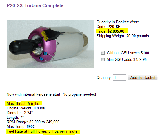 Затея вряд ли имеет какое-то рациональное объяснение, кроме как "голь на выдумки...", при наличии например вот таких турбинок как ниже. Тяга 2,5 кг, расход горючки - 90мл/мин...