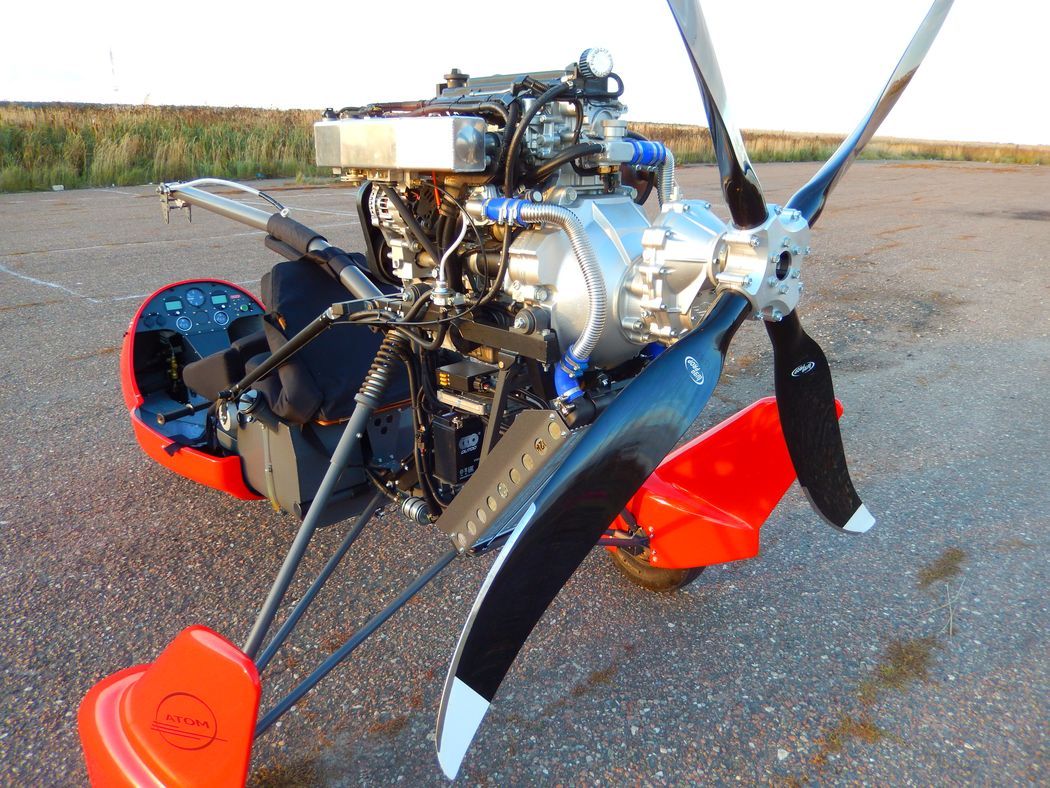 На дельталете АТОМ, в балансире на V=95 км/час, с одним пилотом обороты - 3600 об/мин. С пилотом и пассажиром - 4100 об/мин.