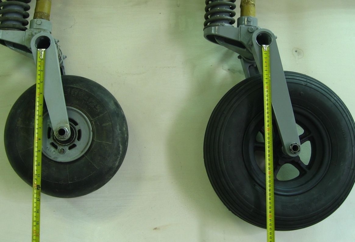 Можно было просто сократить регулировкой длину сжимающей тяги и таким образом сократить ход без всяких кусков резины. Те спарки которые уходили с завода не как комплекты а как готовые самолеты обычно проверялись на полное обжатиеи при необходимости регулировались.А еще колесо, если это спарка, упрется в обтекатель не дожидаясь полного обжатия пружины.