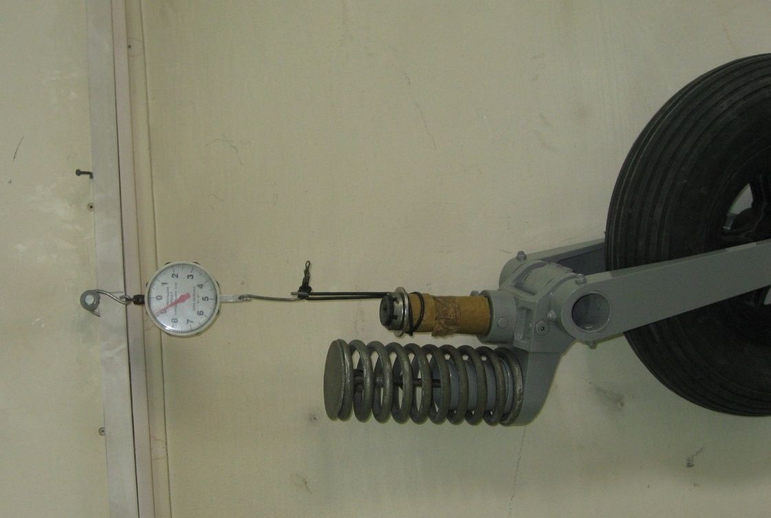 Вы апсолютно правы , но дело в том , что при накатывании на препятствие , большее колесо передаёт на стойку меньшее усилие , чем маленькое колесо. В итоге нагрузка на пружину даже уменьшится на разбеге и пробеге в равных условиях. Другой вопрос - приземление на переднюю стойку с большим углом .Перья вилки увеличенной длинны создадут бОльший сжимающий момент пружины.Возможно придется как то увеличивать жесткость пружины,или ставит амортизатор с резиновыми шайбами,как на сертифицированной авиатике.Переделка...