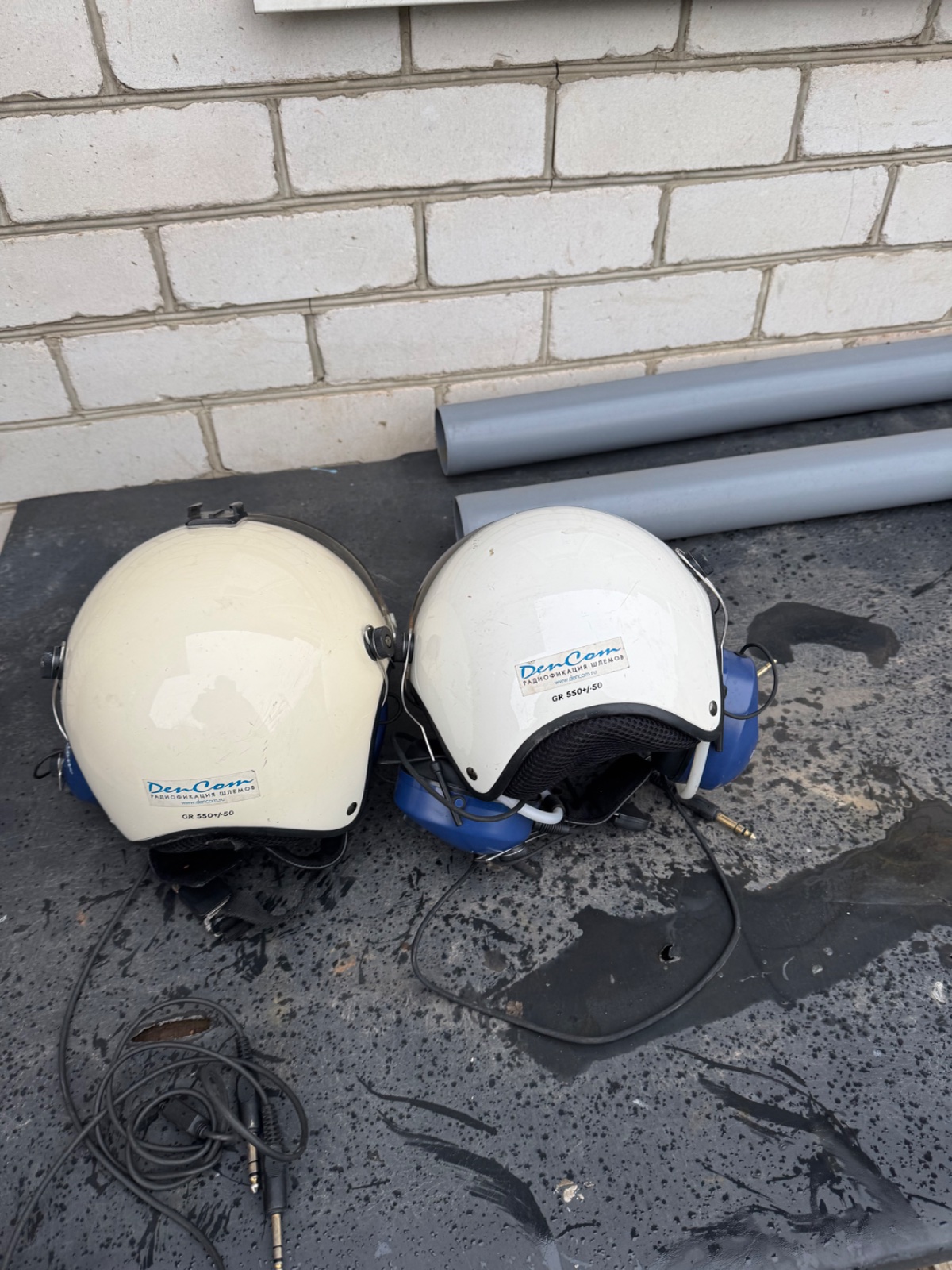 Продам два шлема денком белые радиофицированы один 56-58 второй 60-62 немного б/у цену вижу 30 000 за один или поменяю на гарнитуру типа Девид кларк
