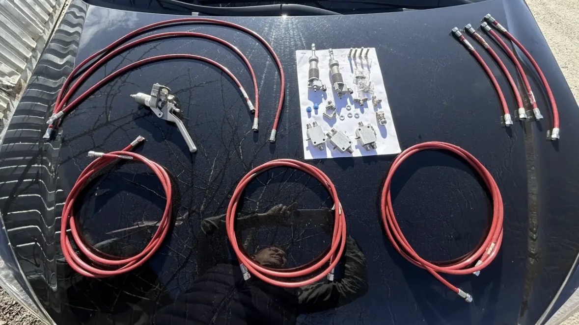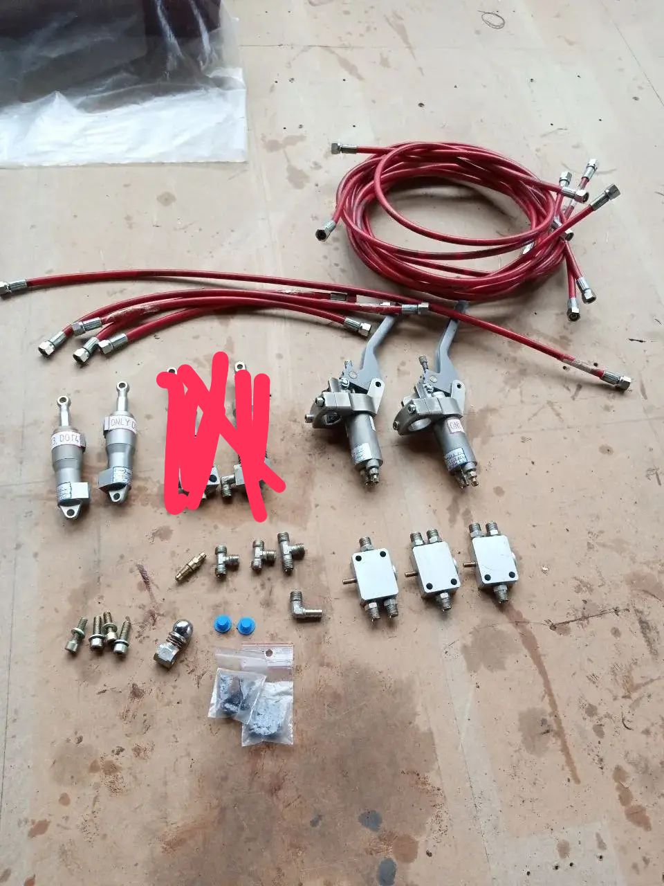 Добавлю фото из комплекта !Два цилиндра ,три распределителя ,тормозная ручка одна и комплект всех штуцеров с трубками !Всё отдам в комплекте с колёсами