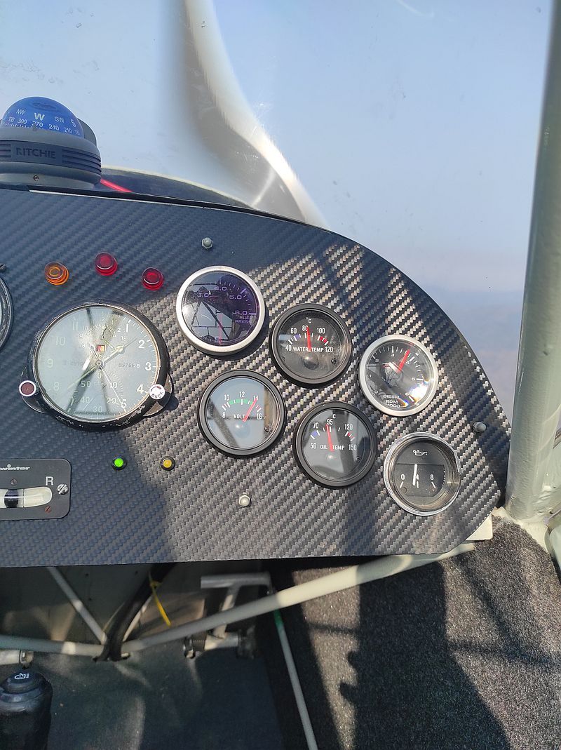 Приборы: УС-250, ВР-10, ВД-10, указатель скольжения, компас КИ-12 (не установлен, стоит яхтенный, он удобнее читается). Приборы контроля двигателя: давление масла с аварийной лампой, температура масла, температура ОЖ, вольтметр, лампа индикации отказа генератора, тахометр. Приборы контроля двигателя имеют встроенную подсветку, выведенную на отдельный выключатель. Установлен счётчик моточасов. АЧС-1.