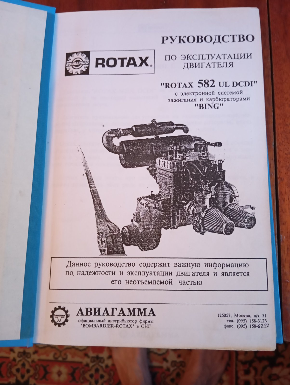 Продам руководство по эксплуатации двигателя ROTAX 582 UL DCDI на бумажном носителе, ксерокория.