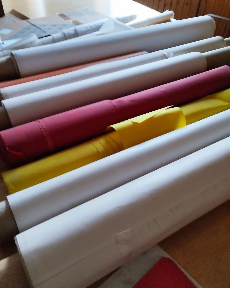 Есть еще лавсан производства Каунас. Хорошо пропитан. Ширина от 110 до 86 см. Цена 50 рублей метр. Весь за 5 т.р. (всего больше 150 метров)