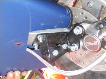 Носовой имеет кронштейны в двух точках,под нижней частью рамки кресла и в носу.Третьим "кронштейном" является приборная панель,она жестко к обтекателю и к хребтовой трубе.Задняя часть имеет так же два кронштейна по бокам в верхней части рамки кресла.Третий крепеж,это 6 болтиков М6,которыми свинчены перед и зад,как у настоящего.