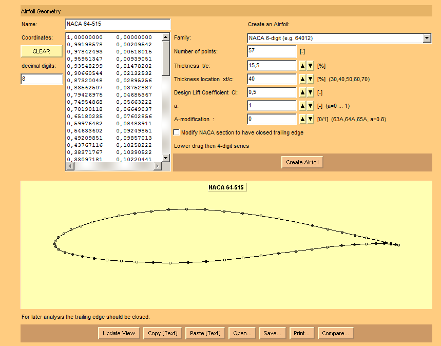 Владимир Павлович,если профиль просто "растянуть" в "толщину" в "пэинт" редакторе,получится тоже самое что и в пересчете по эпюрному?Используя эпюрный (воображаемый, с относительной толщиной 100%), можно любой из обсуждаемых профилей нарисовать любой относительной толщины. Исключение составляют профиля NACA - да и то, погрешность при использовании эпюрного профиля на 4-х и 5-значных сериях непринципиальна и находится в пределах точности измерений.