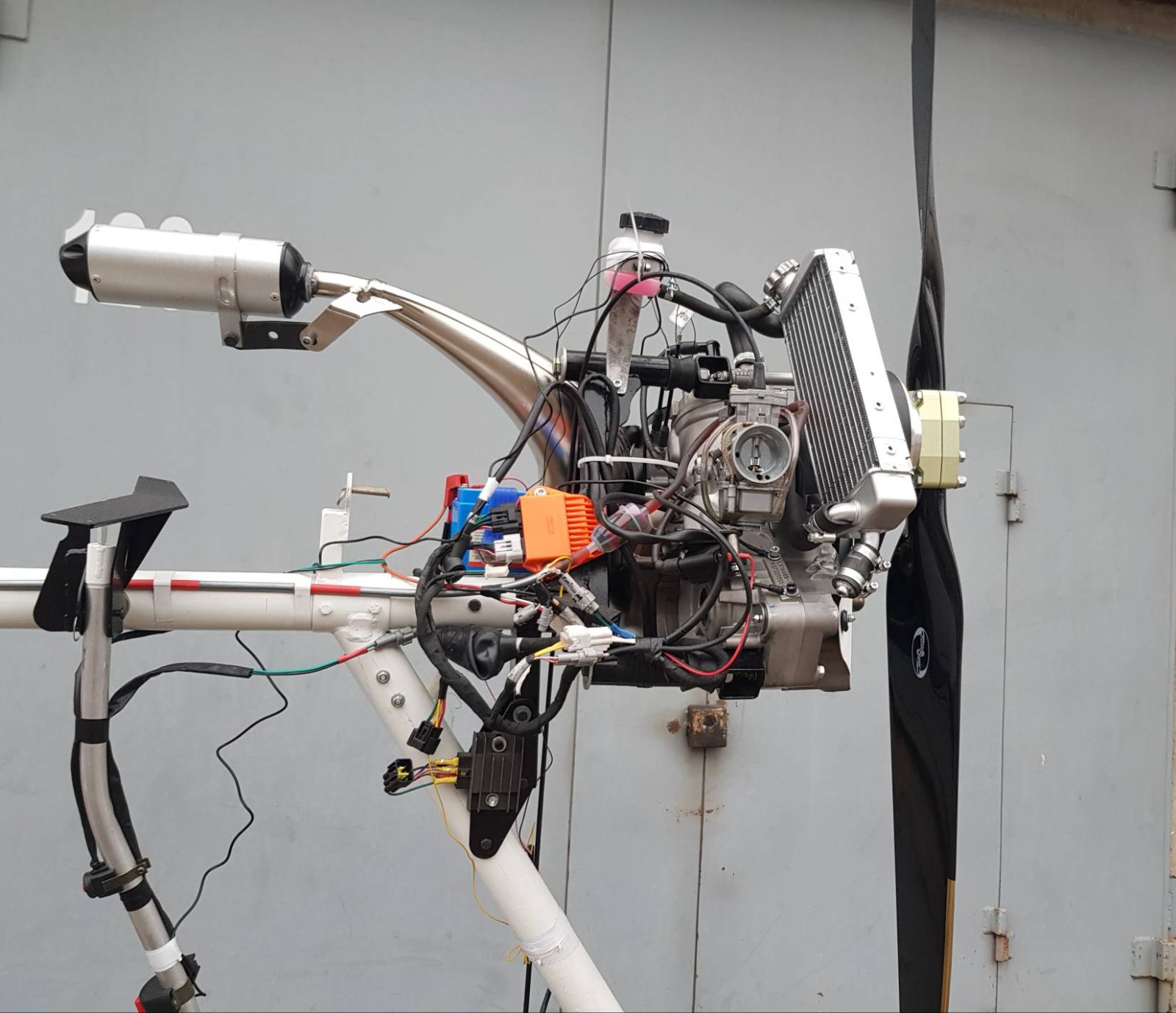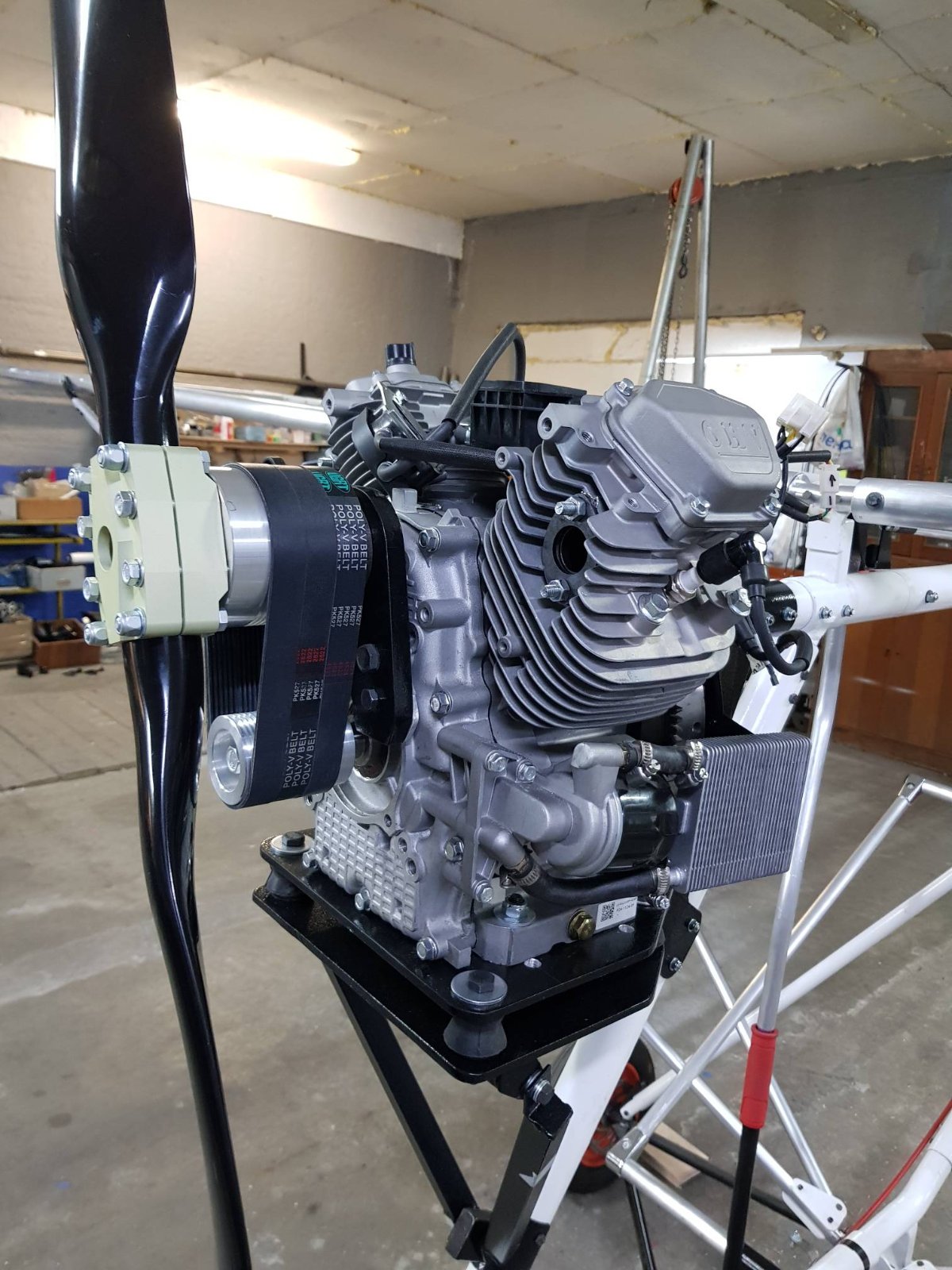 Если тяжелый как рельса, то вряд ли. Ну, экзотики и у нас хватает. Один заказчик пожелал поставить французский оппозит JPX PUL 425. Ставился в 70-80-хх на самолёт Lazair II. Одноцилиндровые варианты мотора ставились на Кри-кри. Википедия сообщает, что в нем 26 л. с. (19 кВт) при 4600 об/мин. В нашем варианте он будет так как на фото или вверх выхлопной, смотрю варианты. Самолет к концу месяца д. быть готов, ждем редуктор, поликлиновый.В тему моторов, был , а может еще и есть , такой моторчик zenoah komatsu, не помню модель. Пускачь от бульдозера.