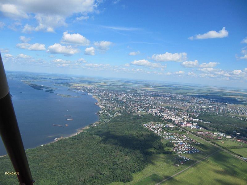 На следующее утро я проснулся опять в Казани. Имея беруши, спать в поезде вообще одно удовольствие, за две ночи в поездах я капитально отоспался,  был бодр и свеж, и снова готов к приключениям. Саша и Радик встречали меня, и Саша объявил, что расслабляться некогда, план подан на двенадцать местного, так что сразу на аэродром, садимся в телеги и вылетаем. А я то надеялся еще по Казани побродить, но не судьба. В двенадцать мы конечно не вылетели, пока собирались, поспела окрошка, картошка и другие вкусности, ну не вылетать же на пустой желудок. Вылет переносили раза три (теперь я понимаю, как это в большой авиации происходит) и вылетели намного позже запланированного. Ветрище раздул будь здоров, и выбравшись на взлете из роторов мы помчались к Уфе с приличным довеском к путевой. Саня подал такой чудной план, из Вишневки, напрямки, до границы Казань – круга, а дальше вроде как выход в Ж - пространство, и он прошел, к его удивлению, но толи он что то не так диспу сказал толи его дисп не так понял, но на границе круга, вместо чтобы попрощаться, Сашу попросили установить связь с районом, Саша установил, и тут же попытался попрощаться, но девушка попалась настырная, сказала, - «работайте со мной», и попросила расчетное пункта назначения. К этому Саня был не готов и дал ей ближайший попавшийся на пути аэродром в Чистополе, видимо надеясь что там она от нас отвяжется. У нее на этот счет были другие соображения и так мы и пролетели под управлением до самой посадки в Сарманово. Про этот аэродром нас ребята предупредили, что начальница там  женщина очень душевная, и если сразу, после посадки, нас не расцелует, то на прощанье, то уж точно.  Не обманули. Я был далековато от нее, но Саня пред взлетом получил обещанный поцелуй на прощанье, вместе с разрешением взлетать прямо с перрона. Ветер дул - честная десятка, ровно поперек тамошней полосы, так что это нам было очень кстати.