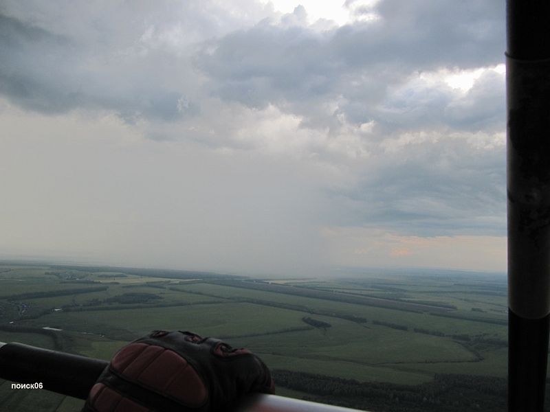 Дальше до Уфы полетели, наконец, опять в Ж. Перед Уфой погода первый раз заставила слегка понервничать, дорогу перекрыли тяжелые темные тучи и очаги дождя. На подлете обсудили с Саней тактику, подлетаем поближе и суем нос в эти тучи, если будет страшно - убегаем, если нормально – летим дальше. Такая тактика помогала нам и дальше по маршруту, так как далеко не всегда, внешне страшные тучи несли в себе серьезную проблему. Часто, залетая под них, мы обнаруживали вполне себе нормальные условия для полета. Так и сейчас, несмотря на жуткий вид внутри было вполне приемлемо и  мы полетели дальше, обходя интенсивные очаги дождя а в вскоре, вывернув из за очередной дождевой колонны, уже увидели и сам аэродром Первушино.