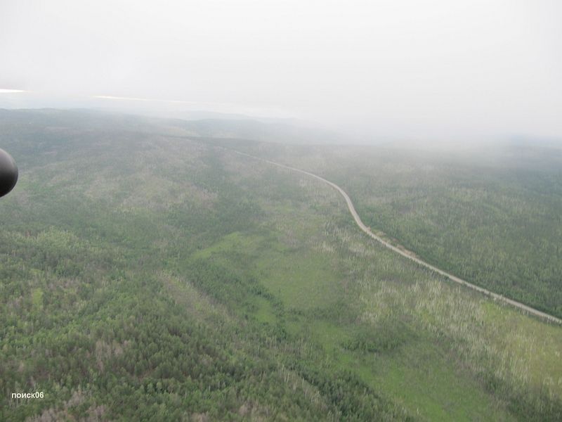 Вылетели в районе одиннадцати. Туман как то быстро рассосался, только что ничего не было видно и вот уже чистое небо. После взлета я сразу забрался метров на семьсот,  чтобы быть повыше на случай внезапного отказа и успеть выбрать нормальный кусок дороги для приземления. Погода стояла прекрасная и я надеялся что наше погодное окно не сдвинулось по времени. Ведь там где мы ночевали посмотреть погоду не было возможности.  Саня только с иридиума смог дозвонится в Могочу, чтоб нас завтра ждали, я, правда, походив по местности смог там поймать немножко мегафона и сказать по нему пару фраз жене, но и только, про интернет речи не было.