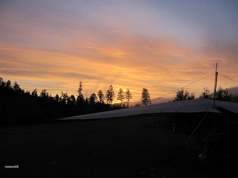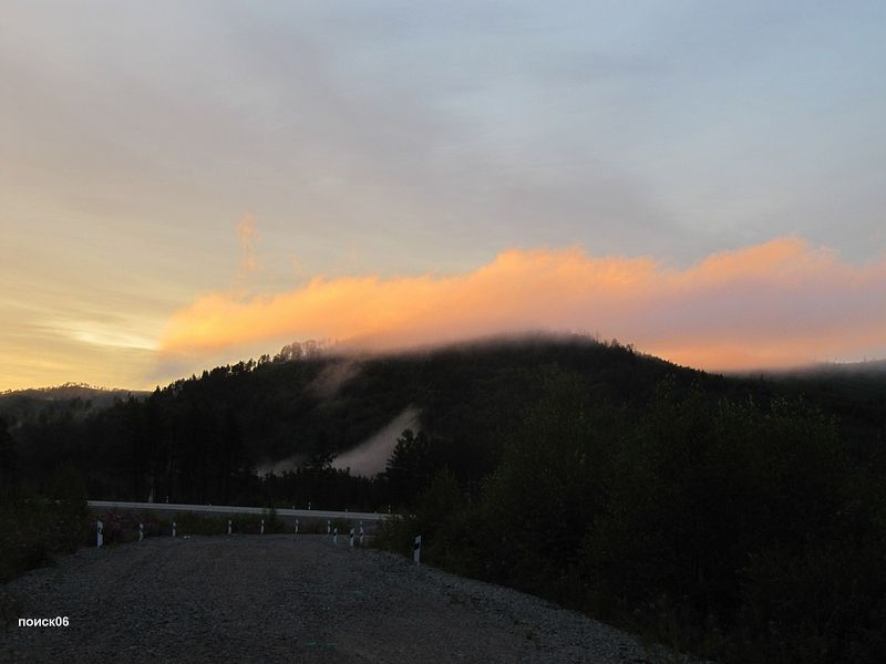 Пора было уже заканчивать ремонт, потому что на сопках уже начал образовываться туман, и надо было, успеть поставить палатку и закидать в нее вещи, пока все не намокло. Да и Саня уже с макаронами закончил и звал дернуть по рюмочке. Было за что, хоть и такая нервотрепка с погодой и бензином была, но все равно почти уложились сегодня в график, до Могочи сто километров осталось, и стало быть, завтра есть все шансы проскочить. Перед тем как  вечерний туман накрыл нас  полностью, прямо над нами образовался кусочек абсолютно чистого неба и засияли звезды, подтвердив что наше «окно» открывается. После этого нас накрыл такой густой туман, что не только с трассы  не увидеть, на самой площадке нас найти можно было бы только на ощупь. Да и движение по трассе полностью прекратилось, ехать ночью в таком тумане по серпантину дураков не было.