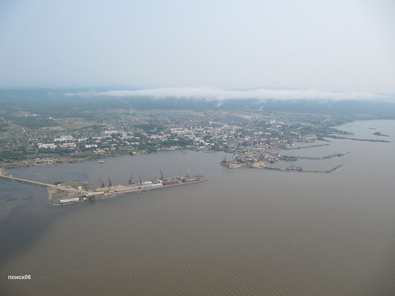 Среди людей которые нас встречали оказались и представители администрации которые устроили этакий стихийный митинг с поздравлениями, вручением подарков, речами и совместным фотографированием. Я слегка обалдел от происходящего, так нас еще нигде не встречали. Видно было что люди действительно рады нашему прилету. После того как основная часть встречающих разошлась, мы зашвартовали аппараты оставили сына Федора - Женю охранять их а сами поехали к Федору домой покушать и подумать как нам действовать дальше. Мы планировали слетать на остров Чкалова завтра, так как по прогнозу, после обеда в Николаевске погода должна была испортится, но после обеда наступило а погода не собиралась портится. Посмотрели карту приливов, ближайший должен был начаться в четыре часа, и мы вполне успевали попасть на остров до его начала. В общем решено – летим сейчас. Саня быстренько подал план и мы поехали собираться. Я решил выкинуть из телеги абсолютно все, чтобы максимально облегчить ее для посадки на песок. Выкинул все, даже инструмент. Получилась гора барахла примерно мне по пояс. Даже не верилось что это все в телеге помещалось. Взял только пару ключиков чтобы прикрутить табличку к трубе и пару болтов для этого и кувалду,  чтобы вбить трубу в землю. Саму трубу позаимствовали в хозяйстве у Федора и примотали к Сашиной телеге. Первоначально Саня планировал лететь вдоль берега но Федор нас отговорил. Посадок там все равно не было а крюк получался километров тридцать. Федор опять перекрыл кусок дороги для нашего взлета,  мы взлетели  и взяли курс напрямик на остров Чкалова. Полет проходил над сопками, но это было для нас дело привычное, да и расстояние то здесь было смешное, всего сорок километров. Освобожденный от барахла аппарат рвался вверх и пугал уже забытой скороподъемностью, и подозрительно низкими оборотами в горизонте. Через  двадцать минут увидели Охотское море, и остров. Он всего в пяти километрах от берега. Федор предупредил, что на острове есть люди, и мы на подлете заметили какие-то постройки на берегу,  баркас в бухточке и даже внедорожник. Саня спустился пониже чтобы выбрать место для посадки а я фоткал  остров с разных ракурсов. Как знал что на обратном пути сделать это уже не будет возможности. Наконец Саня дал команду следить за ним и пошел на посадку на выбранный кусочек прибрежного песка. Я внимательно наблюдал за его посадкой и все прошло благополучно, значит и мне можно попробовать. У Сани правда колеса пошире, но пока я нормально садился везде где смог сесть Саня, но все равно надо быть очень аккуратным. На выдерживании я оттормозился до минимально возможной скорости и садился буквально со скоростью пешехода. В этом здорово помогал сильный встречный ветер, и все равно телегу немного водило на пробеге. Я ехал по песочку, рядом в трех метрах плескалось Охотское море, и пребывал в какой то эйфории. Надо же, мы все таки добрались сюда, даже не верится. Уже не раз убеждаюсь что берег моря как ничто другое подходит быть целью путешествия. Даже когда на машине к морю приезжаешь, увидишь его издалека, и чем то таким приятным душа наполняется а уж на маленьком самолете или на дельтике когда прилетаешь и оно выныривает из за горизонта сразу все такое огромное и красивое. Так было и во время первого нашего путешествия до Черного моря и обратно