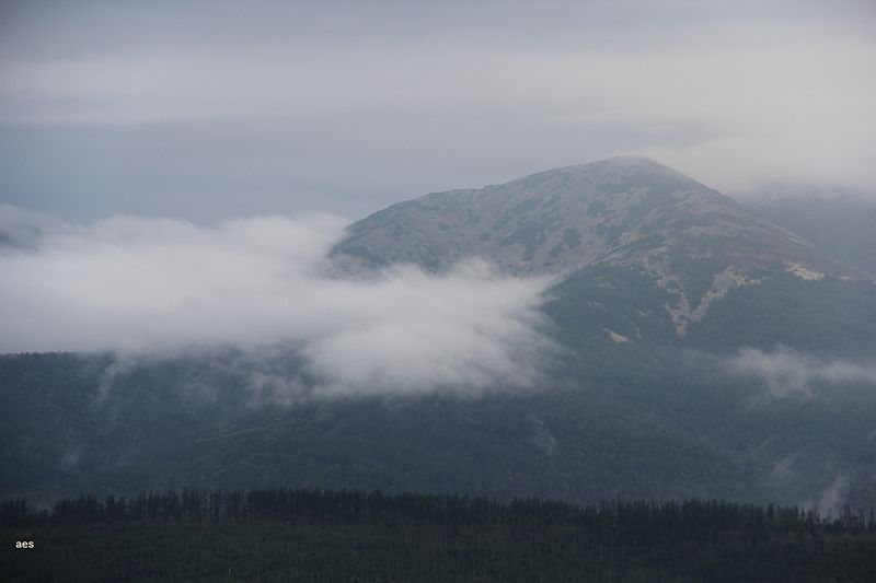 Туда летели высоко над сопками, Обратно возвращаемся над самыми вершинами и ниже, прижатые кромкой облаков.