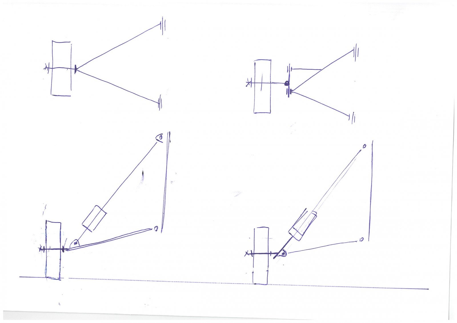 А чем не устраивает вариант попроще? Да, ось вращения идет сверху вниз, опускаясь по размаху, так сделана на scouchelle, можно сделать чтобы ось была горизонтальной земле, но тогда надо поднять крыло, задав угол V на высоту крепежных элементов. Так сделано на demoichelle , оба варианта рабочие. Но имея большой угол V теряете в управляемости и добавляете нервозности в болтанку.Важный вопрос автору, у консоли 2 поворотных точки крепления, одна точка идет по центру лонжерона,(судя по фото) вторая на точке крепления подкоса, в итоге ось вращения крыла получается идет по диагонали относительно лонжерона(профиля крыла) это так в оригинале тоже?