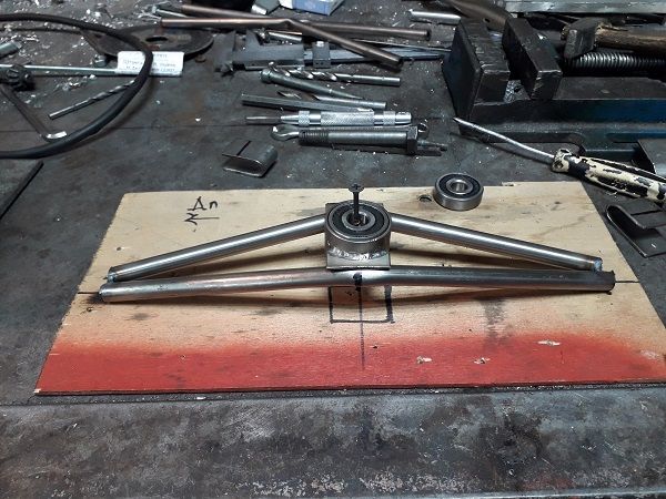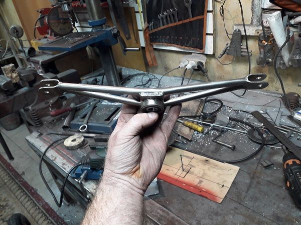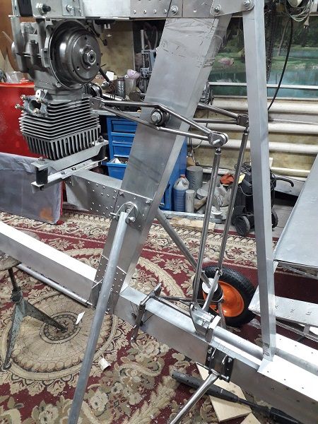 Качалка. У буржуев тяги идут спереди крыла, я решил делать сзади, но для этого надо развернуть направление движения. Качалка мощная, т.к. она воспринимает все нагрузки от крыла.