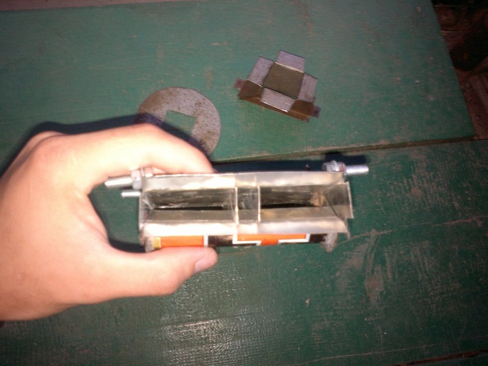 Собираю клапанный канал на точечную сварку из консервной жести.