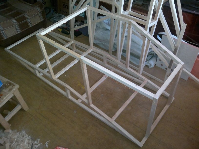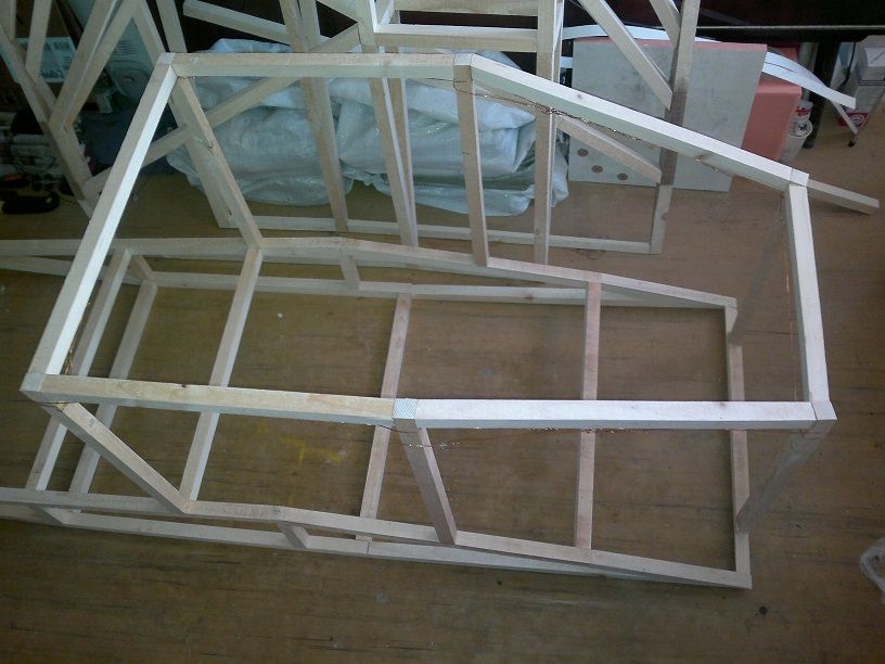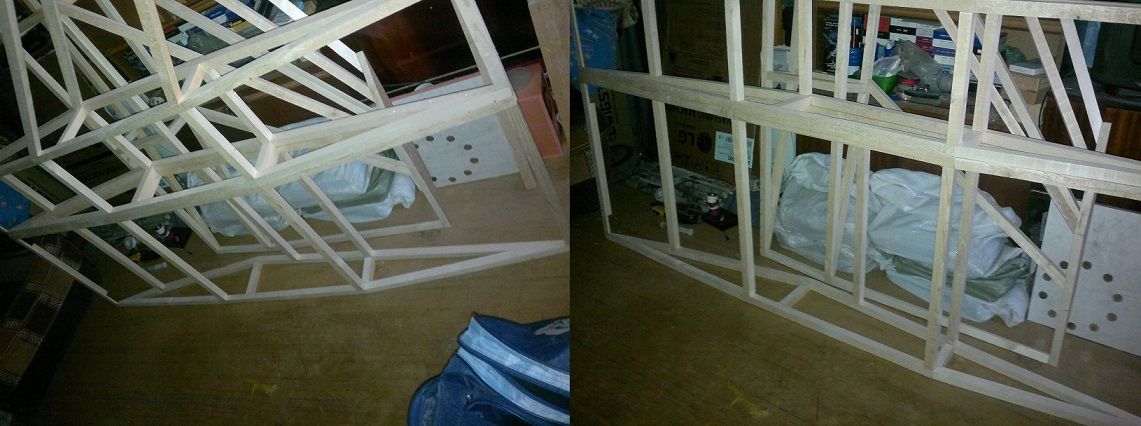 Каркас крыльев почти готов, сперва все бруски склеиваю на силикатный клей, позже когда все основные части каркаса будут склеены, места стыков брусков буду обклеивать стеклопластиком.