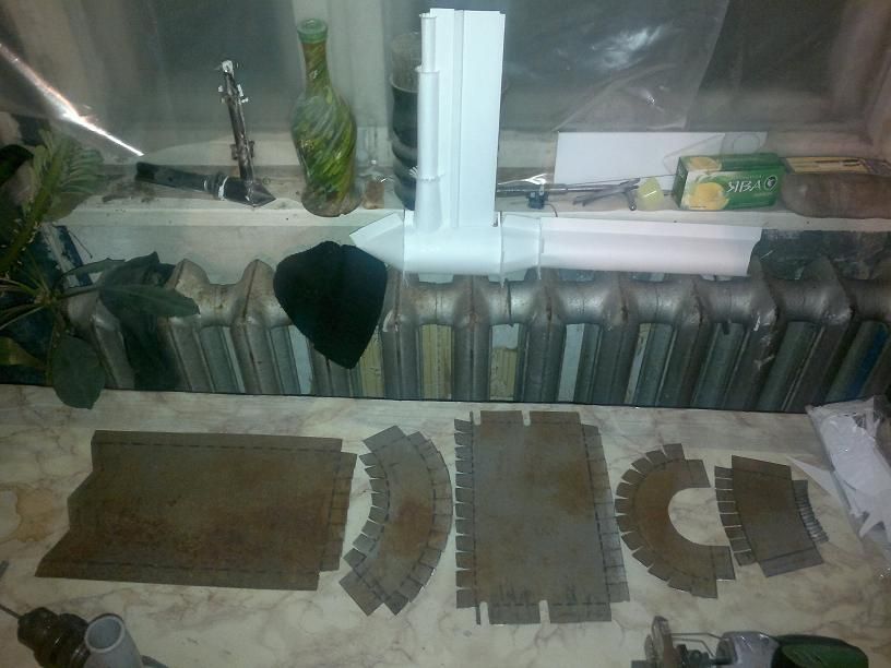 Сперва делал полноразмерный макет двигателя, что бы не допустить ошибок при изготовлении. Только пришлось переделать плоскость, к которой крепяться ступени воздухозаборника.