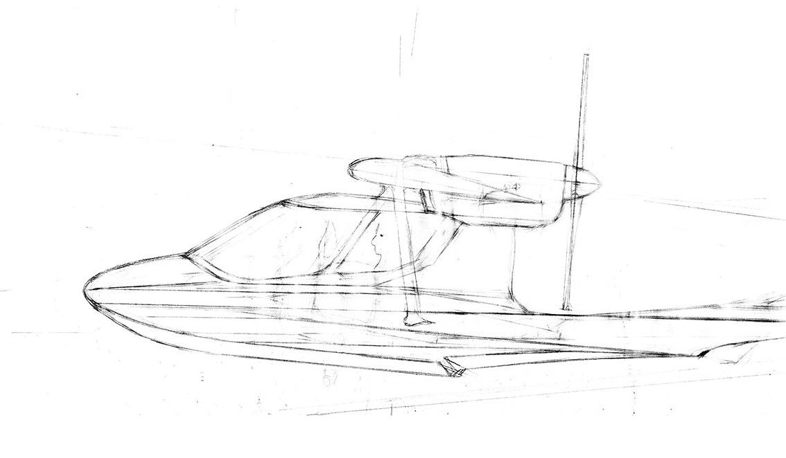 Это просто ранний набросок.Диаметр винта 1800мм.Посадка пилотов как у Скай ароу.Носок крыла над кабиной отодвигается,можно вместе с фонарем.