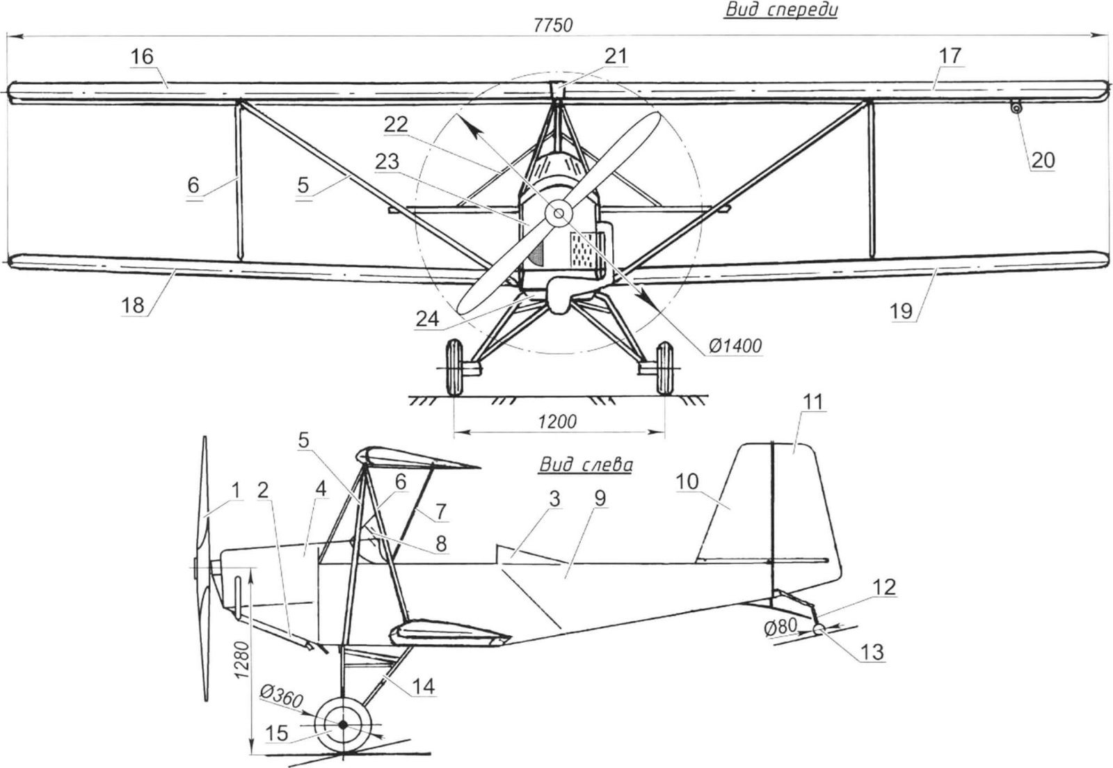 Никакой оригинальности!Короче, давайте так. У меня же в сарае уголок алюминиевый валяется и проволока железная 5 мм диаметром. Вот я и думаю из уголка раму болтами сцепить. Крыло из проволочных дуг по форме профиля, а между ними растяжки из стального тросика. Сверху брезент какой-нибудь пропитаем, чтоб не промокал. Ну и хвост из фанеры или из того же брезента. А то что то я погорячился с парасолями, бипланами. Давайте уж тогда ультралайт по моей схеме. Чертежи найду. Как вам идея?