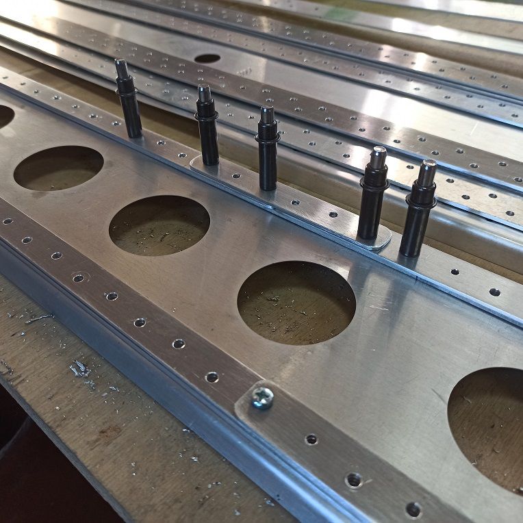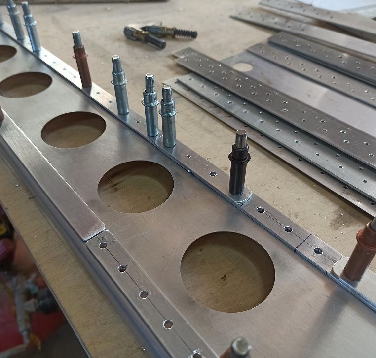 Пошла работа… Пневмозаклёпочник на этом количестве уже помер😝 (А точнее, его втягивающие губки. Был бы ещё компрессор другой, а так он дохлый и много лишних пшиков… В общем, помер «Максим», ну и хрен с ним)😁.