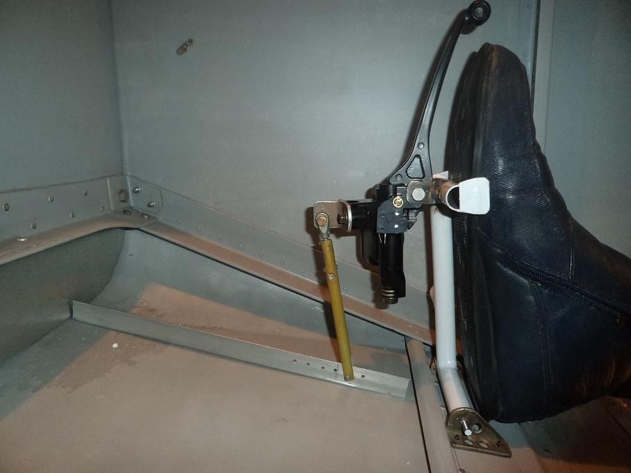 Рулежка без тормозов, все же, очень неудобна, поэтому, вариант с двумя велосипедными гидротормозами я, все же, прорисовал бы непременно, и оставил бы гарантированную возможность их установки в любой момент без переделки педалей. К тому же, имея тормоза, имеешь возможность вывести на взлетный режим без расхода длины разбега.