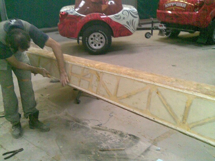 очень интересная конструкция хвостовой балки, она тоже из листового пластика. на квадратную ферму насажены пенопластовые накладки и на них лежит пластик уже декоративный.