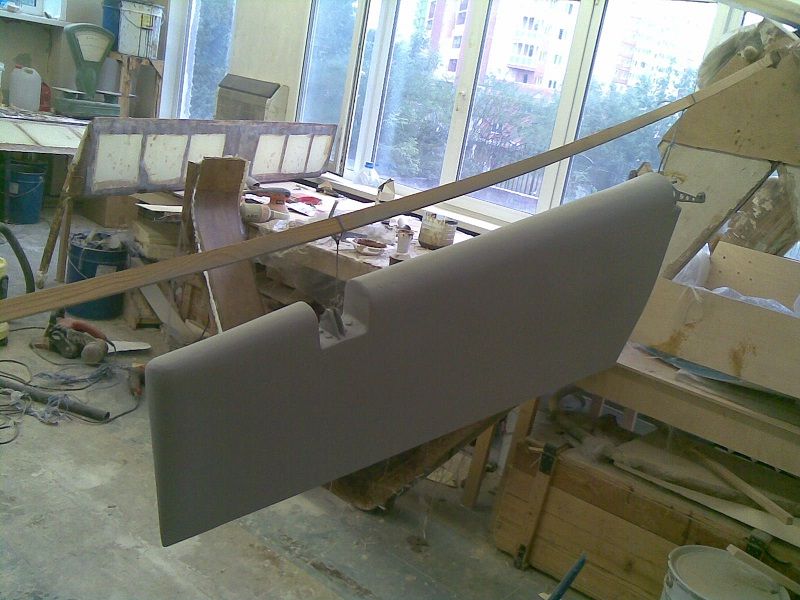 Тут видно, что лобик крыла сделан из текстолита обычного, даже не стекло, тоже всё отлично работает. Но с деревом. задняя часть крыла зашита стеклотекстолитом (белая).