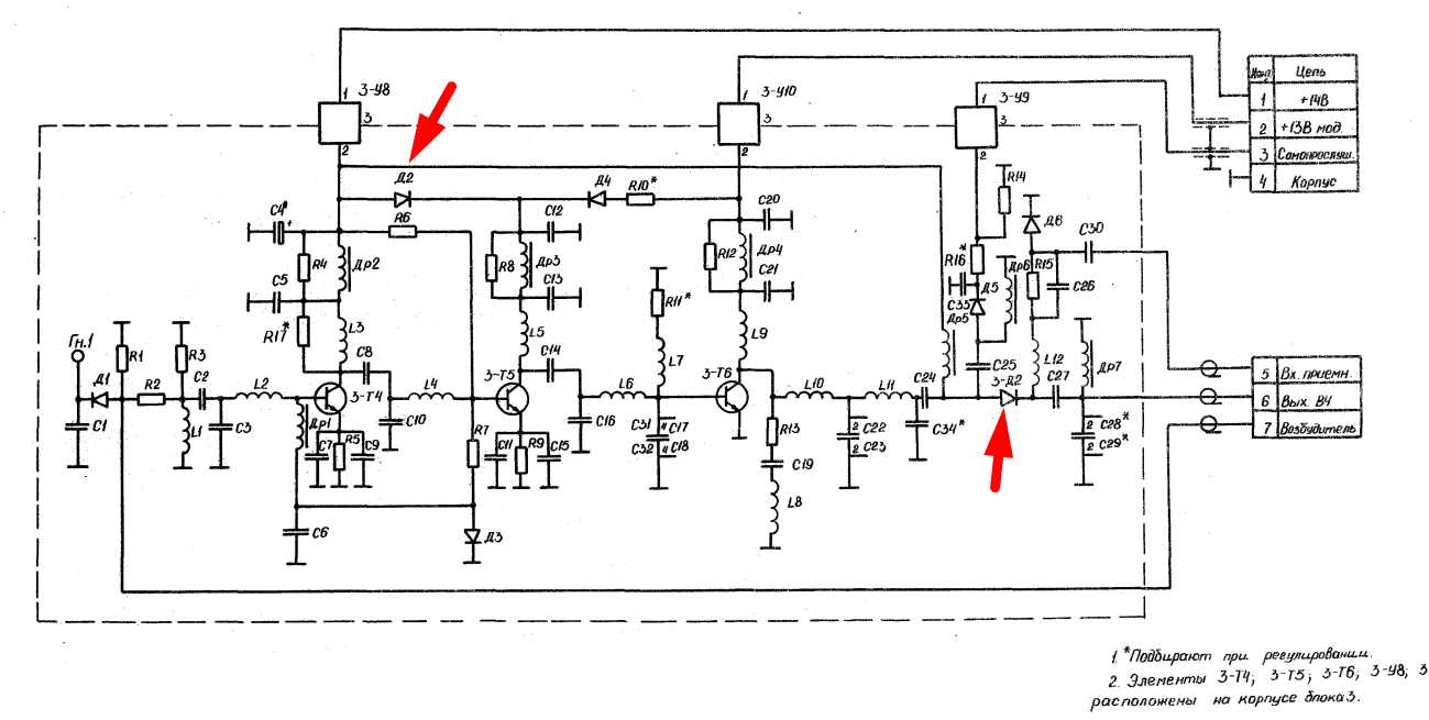 Понимаю, что 10 лет прошло, но хотелось бы уточнить - в усилителе мощности нет диода 2А537А, он всего один в Бризе и находится в "корпусе приемопередатчика".